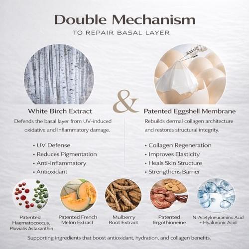分子层面破坏 (Molecular Level Destruction): UVB辐射直接损伤细胞DNA,诱发细胞凋亡和炎症反应;UVA深入真皮层促使炎症因子大量释放;加速胶原蛋白和弹性蛋白降解,导致皮肤松弛、皱纹产生和色沉色斑。 / UVB radiation directly damages cell DNA, inducing apoptosis and inflammatory responses; UVA penetrates the dermis to prompt the massive release of inflammatory factors. This accelerates the degradation of collagen and elastin, leading to sagging skin, wrinkles, and pigmentation.